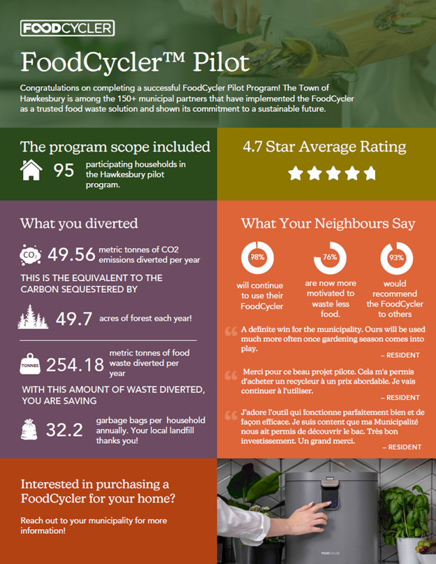 The Town of Hawkesbury participated in a FoodCyclerTM pilot project from December 2023 to December 2024.