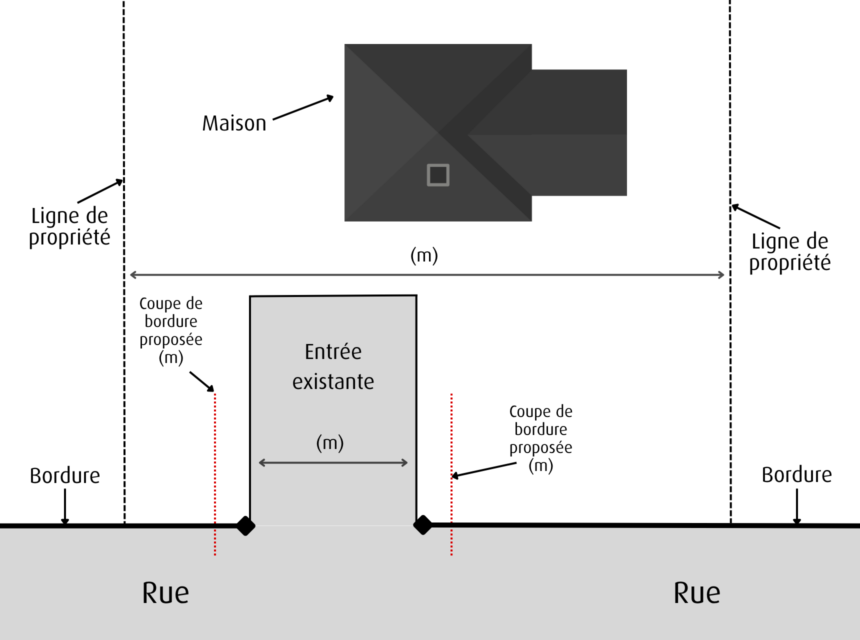 - La demande doit porter uniquement sur une coupe de bordure et non sur une coupe de trottoir. Aucune coupe de trottoir n'est autorisée.